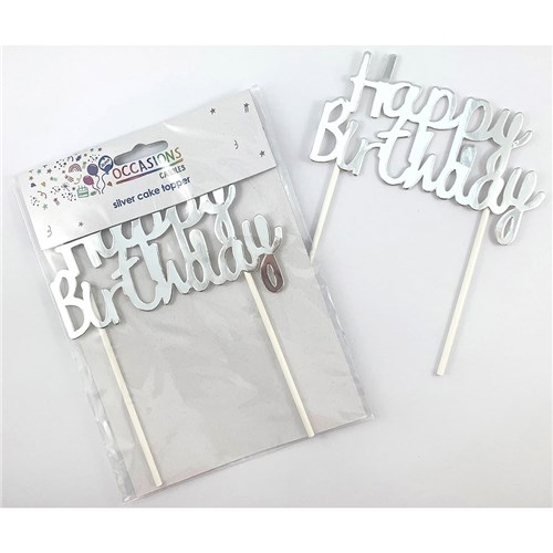 Alpen Occasions Happy Birthday Cake Topper 100W x 135mmH Metallic Silver