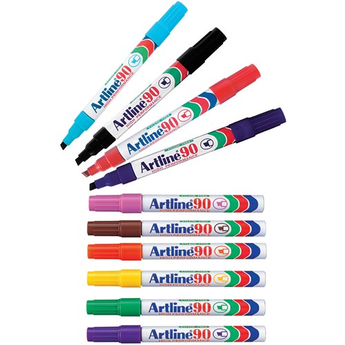 • Artline 90 Permanent Markers Chisel 2-5mm Assorted Colours Box Of 12