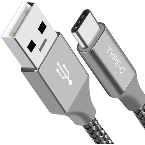 USB-C 3.1 Type-C Data Sync Charger Cable Silver Strong Braided Heavy Duty Fast Charging for Samsung Galaxy Note 8 and S8 Plus, LG Google, MacBook. Strong braided heavy duty fast charging. USB A male to Type C male cable is made with the highest quality materials and technology to enhance both performance and safety. Supports 3.0A Charging and 480Mhz transmission speed. 1 Year Manufacturer's Warranty.