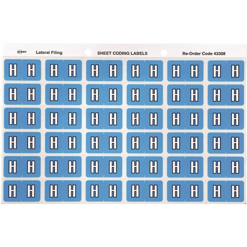 Avery Alphabet Coding Label H Side Tab 25x38mm Blue Pack Of 180