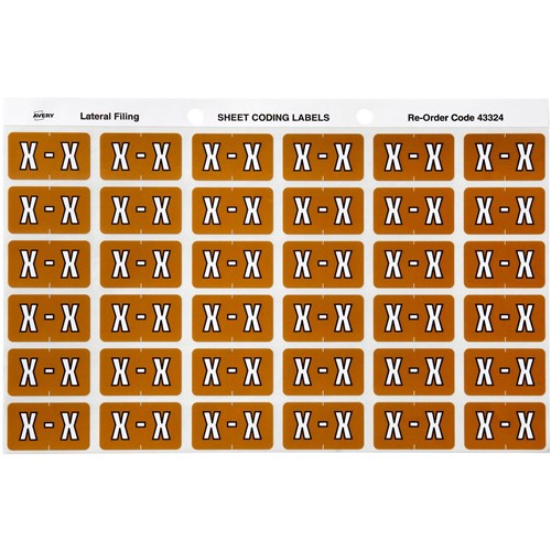 Avery Alphabet Coding Label X Side Tab 25x38mm Mustard Pack Of 180