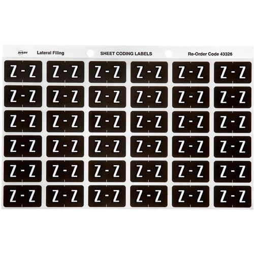 Avery Alphabet Coding Label Z Side Tab 25x38mm Grey Pack Of 180