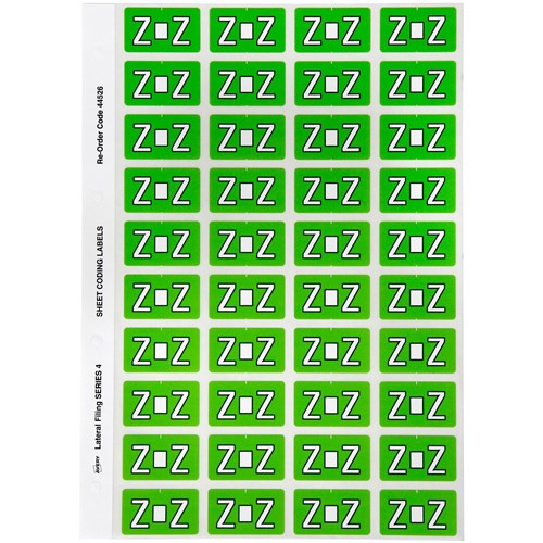 Avery Alphabet Coding Label Z Side Tab 25x42mm Light Green Pack Of 240