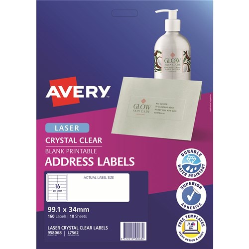 Avery Crystal Clear Laser Address Labels White L7562 99.1x34mm 16UP 400 Labels 524512 In Stock Low Stock Low Stock Please See Attributes