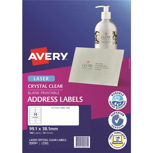 Avery Crystal Clear Laser Address Labels White L7563 99.1x38.1mm 14UP 350 Labels 524511 In Stock Low Stock Low Stock Please See Attributes