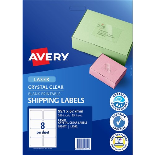 Avery Crystal Clear Laser Shipping Labels White L7567 199.6x289.1mm 1UP 25 Labels 524509 In Stock Low Stock Low Stock Please See Attributes
