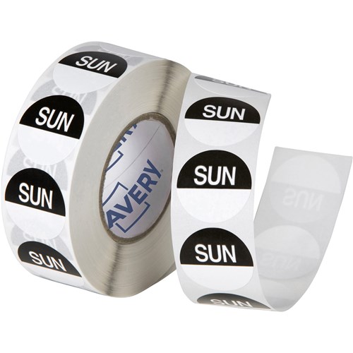 Avery Food Rotation Round Label 24mm Sunday Black Roll of 1000
