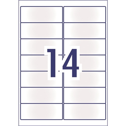 Ideal for parcels or boxes with a dark surface. Compatible with Inkjet printers and smudge-free for a professional finish. Labels provide a contemporary frosted clear finish. Made in Australia. Size: 99.1x38.1mm 350 labels, 25 sheets. 14 labels per sheet (14UP).