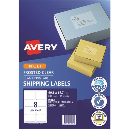 • Avery Frosted Clear Inkjet Shipping Labels J8565 99.1x67.7mm 8UP 200 Labels