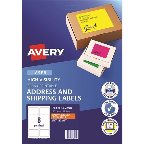 Avery High Visibility Shipping Laser Label Orange L7165FO 99.1x67.7mm 8UP 200 Labels