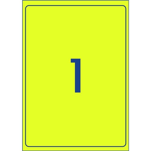 Ideal for labelling products, packaging and marking documents and files for urgent attention. Fluoro coloured labels make your items highly visible and enable instant recognition. Guaranteed Jam Free™ print. Customise your labels with Avery Design and Print, available at averyproducts.com.au/print. TrueBlock® technology, a sliver backing that covers up what's underneath. FSC certified labels made with paper from well-managed forests. Made in Australia. Size: 199.6x289.1mm 25 labels, 25 sheets. 1 label per sheet (1UP).