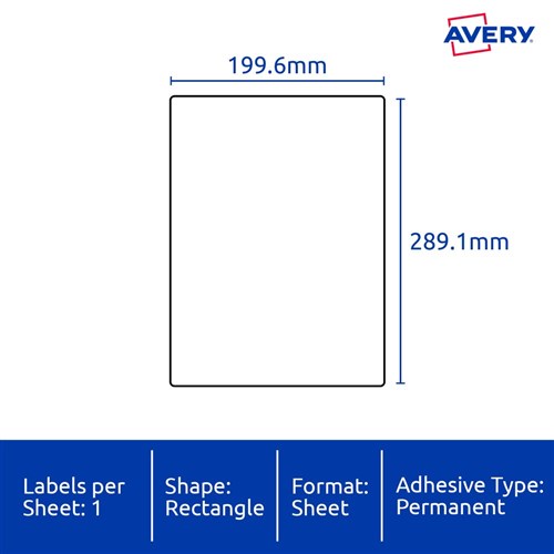 Avery Identification Laser Heavy Duty White L7067 199.6x289.1mm 1UP 10 Labels 649909 In Stock Low Stock Low Stock Please See Attributes