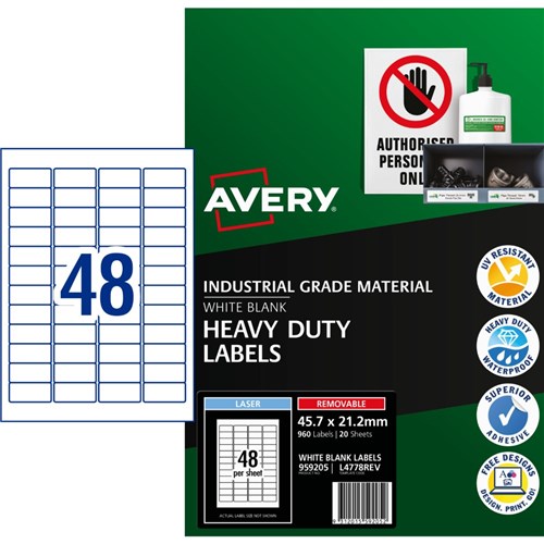 • Avery Identification Removable Heavy Duty Laser White L4778 45.7x21.2mm 48UP 960 Labels