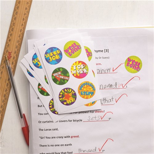 Avery Merit Stickers Caption 2 Round 22mm 5 Designs Assorted Colours 300 Stickers 2567486 In Stock Low Stock Low Stock Please See Attributes
