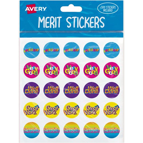 Avery Merit Stickers Caption 3 Round 22mm 5 Designs Assorted Colours 300 Stickers 2567487 In Stock Low Stock Low Stock Please See Attributes