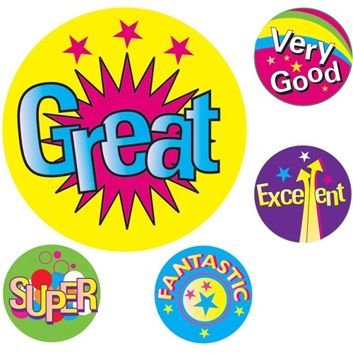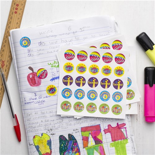 Avery Merit Stickers Caption 2 Round 22mm 5 Designs Assorted Colours 300 Stickers 2567486 In Stock Low Stock Low Stock Please See Attributes