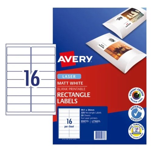 Avery Printable Labels L7162CL 99.1 x 34mm Rectangle Photo Matte White 16UP 320 Labels