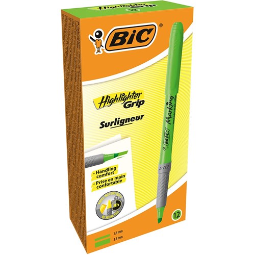 Bic Brite Liner Grip Highlighter Chisel Green Buy 12 for a Pack