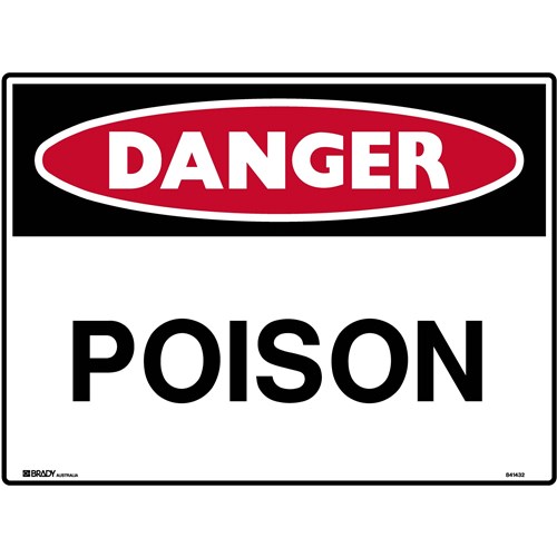Brady Danger Sign Poison 600W x 450mmH Metal White/Red/Black
