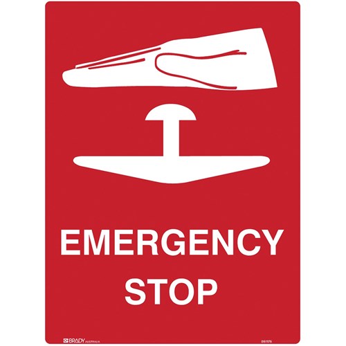 Brady Emergency Sign Emergency Stop 450W x 600mmH Metal White/Red