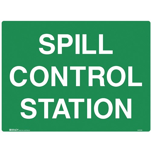 Brady Emergency Sign Spill Control Station 600W x 450mmH Metal White/Green