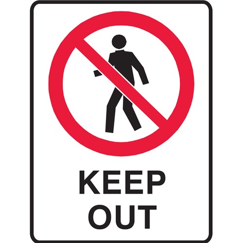 Brady Prohibition Sign Keep Out 450W x 600mmH Metal White/Red/Black