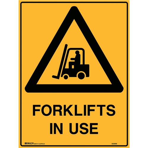 Brady Warning Sign Forklifts In Use 450W x 600mmH Metal Yellow And Black