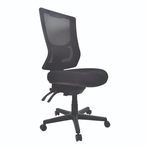 Fabric seat mesh back black. Chair Capacity: 180kg. Composition: Upholstered seat and mesh back, nylon base. Seat Width: 520mm. Seat Depth: 435-485mm. Back Height: 560mm. Indicative Seating Time: Multishift 24/7. 10 Year Manufacturer's Warranty. Delivery, installation and assembly charges may apply to furniture. Please enquire to confirm.