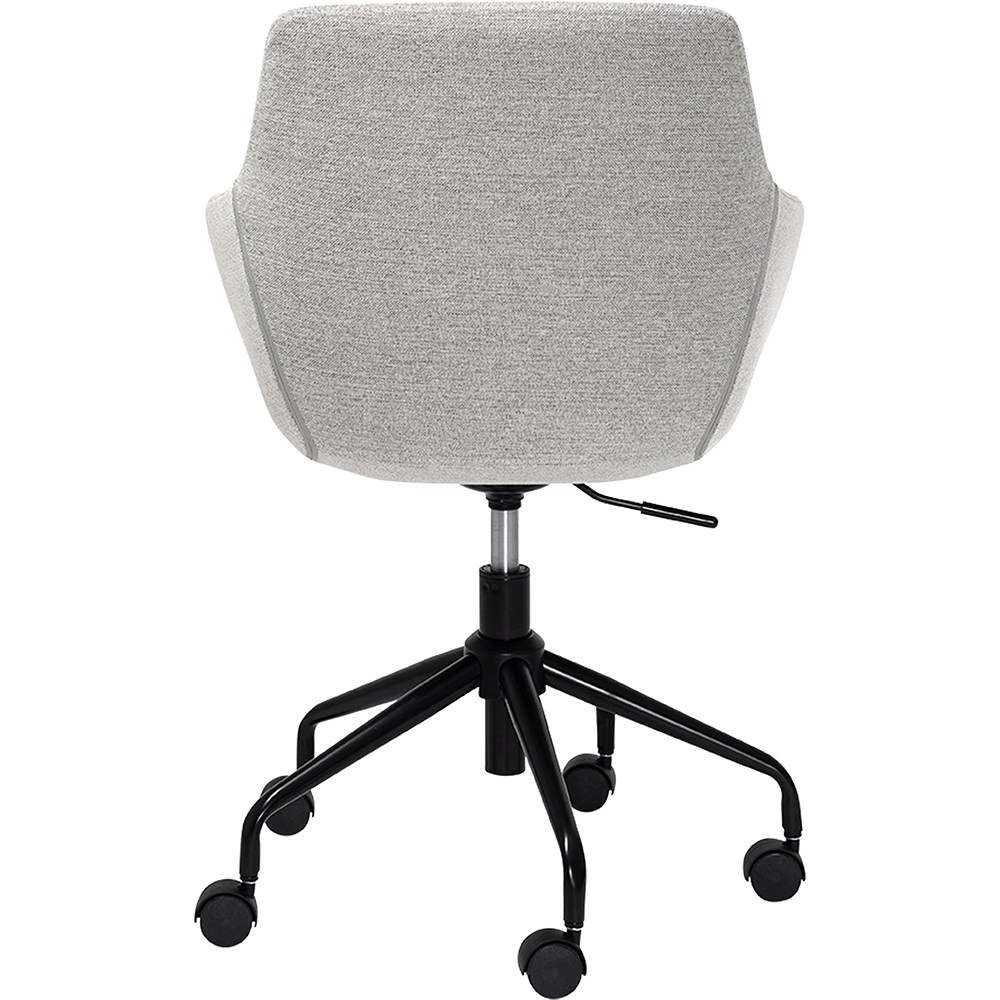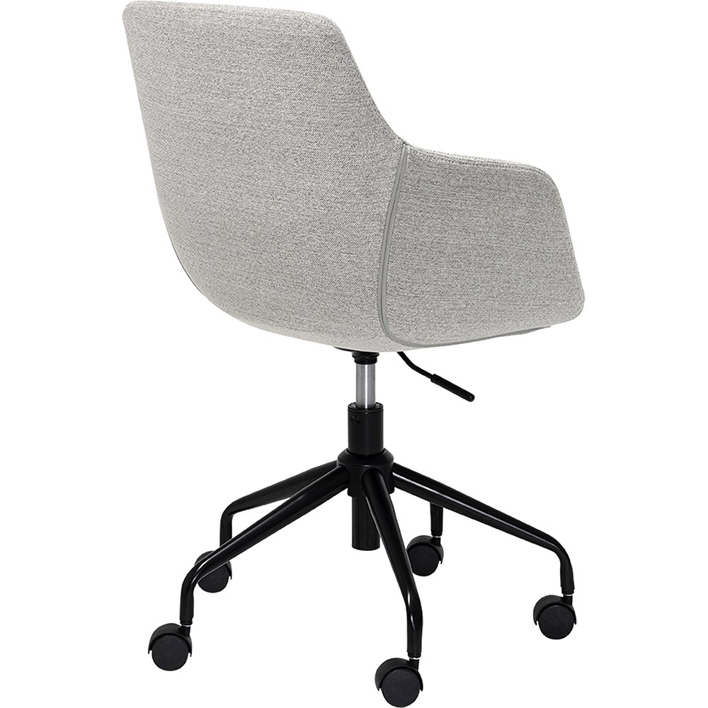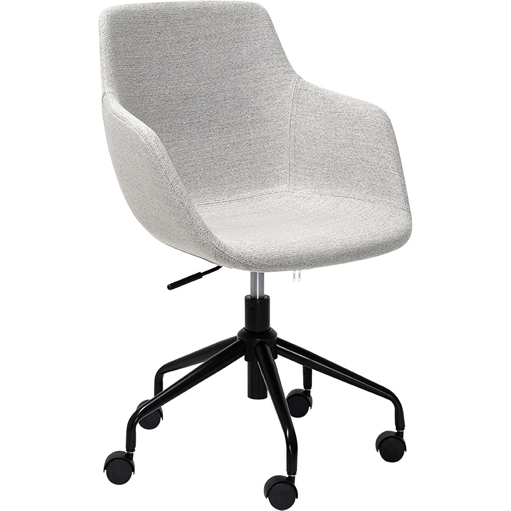 • Modern design with neutral grey fabric upholstery, 5-star powder-coated steel base.