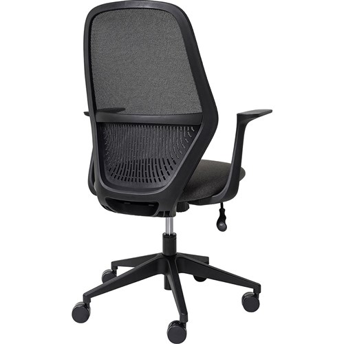Chair Capacity: 120kg. Composition: Breathable mesh back and fabric upholstered seat. Overall dimensions: 630W x 575D x 970Hmm Indicative Seated Hours (per day): 6-8 hours. 5 Year Manufacturer's Warranty. Delivery, installation and assembly charges may apply to furniture. Please enquire to confirm.