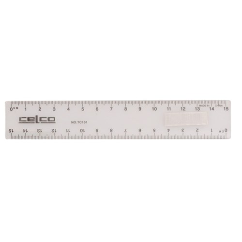 Ideal for use at school, home or the office. Transparent so you can see what you are ruling over as you work. Made from durable plastic. Metric (mm & cm) markings.