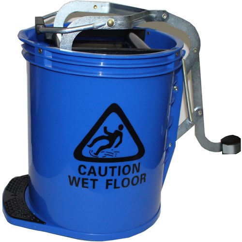 • Cleanlink Heavy Duty Plastic Mop Bucket Metal Wringer 16 Litres Blue