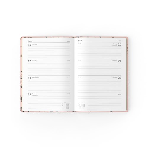 • One design shows botanicals with a textured effect whilst the pink diary showcases botanicals loosely hand-drawn using ink and paper.