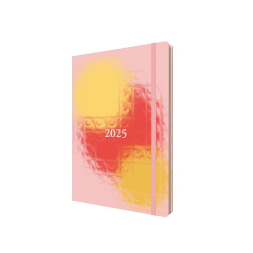 Made from recycled materials and can be recycled when complete. Vibrant gradients and colour transitions continue to trend across design and retail. Abstract shapes, diffused in blurs, have a soft, emotive feel about them that we can project our own feelings on to. The first diary uses calming green and blue as colours with a blurred, 'out of focus' effect, contrasting well with the year stamp. For the second design in this range, a square, glass-like textured pattern across the gradient gives the impression of a finish using a flat design.