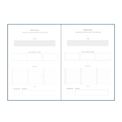 • Includes pages for yearly and monthly goals.
