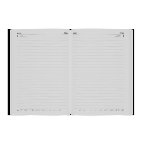 The planning 'Essential' dated range, offers excellent value for money and a host of practical features. Practical layout that will suit academic and personal use, in the classroom, office, at home, and on the go. Available in Week to view and Day to a page layouts. Durable leather grain covers. Gold foiled date stamp. Personal directory. Yearly planners. Ribbon marker. Lay flat opening. Notes pages. International holidays and dialling. Size: 297 x 210mm. FSC Certified.