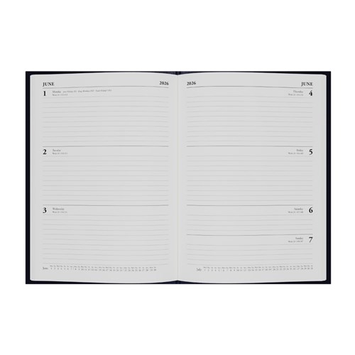 The planning 'Essential' dated range, offers excellent value for money and a host of practical features. Practical layout that will suit academic and personal use, in the classroom, office, at home, and on the go. Available in Week to view and Day to a page layouts. Durable leather grain covers. Gold foiled date stamp. Personal directory. Yearly planners. Ribbon marker. Lay flat opening. Notes pages. International holidays and dialling. Size: 210 x 148mm. FSC Certified.