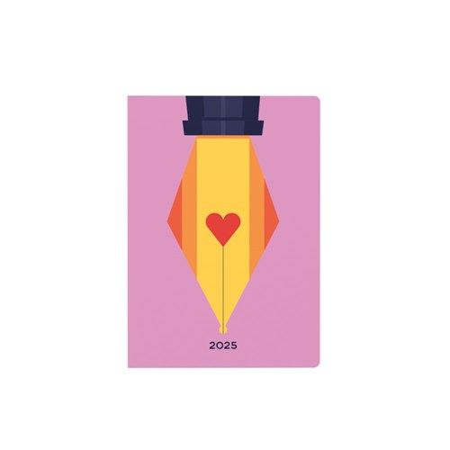 During dark times, designers and creatives continue to love bomb the world with messages of hope, positivity, acceptance and human connection. Love flows from within in the first design which brings together the heart and the nib of a fountain pen. On the second diary, the iconic peace gesture is formed using a bright colour palette to represent humankind in all its varieties. The numbers of the year are placed in the four corners to emphasize the global message of the design. Made from recycled materials.