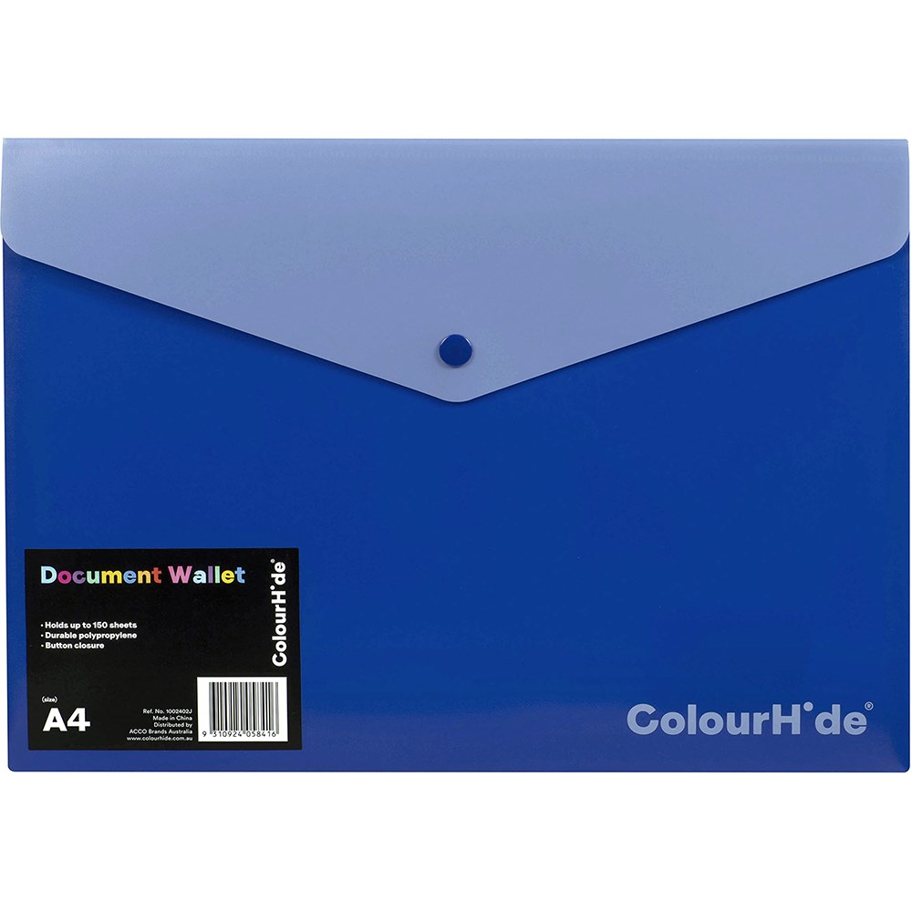 Colourhide Document Wallet with Button PP A4 Blue