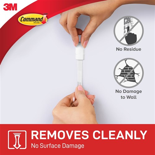 Holds strongly. Removes cleanly without surface damage. Commandâ„¢ Picture Hanging Strips are ideal for hanging pictures. Commandâ„¢ white & clear hooks are ideal for hanging a range of items including keys, calendars, utensils, decorations and more.