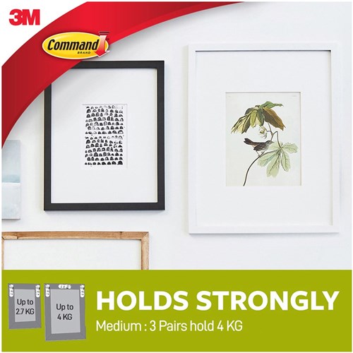 Holds strongly. Removes cleanly without surface damage. Commandâ„¢ Picture Hanging Strips are ideal for hanging pictures. Commandâ„¢ white & clear hooks are ideal for hanging a range of items including keys, calendars, utensils, decorations and more.