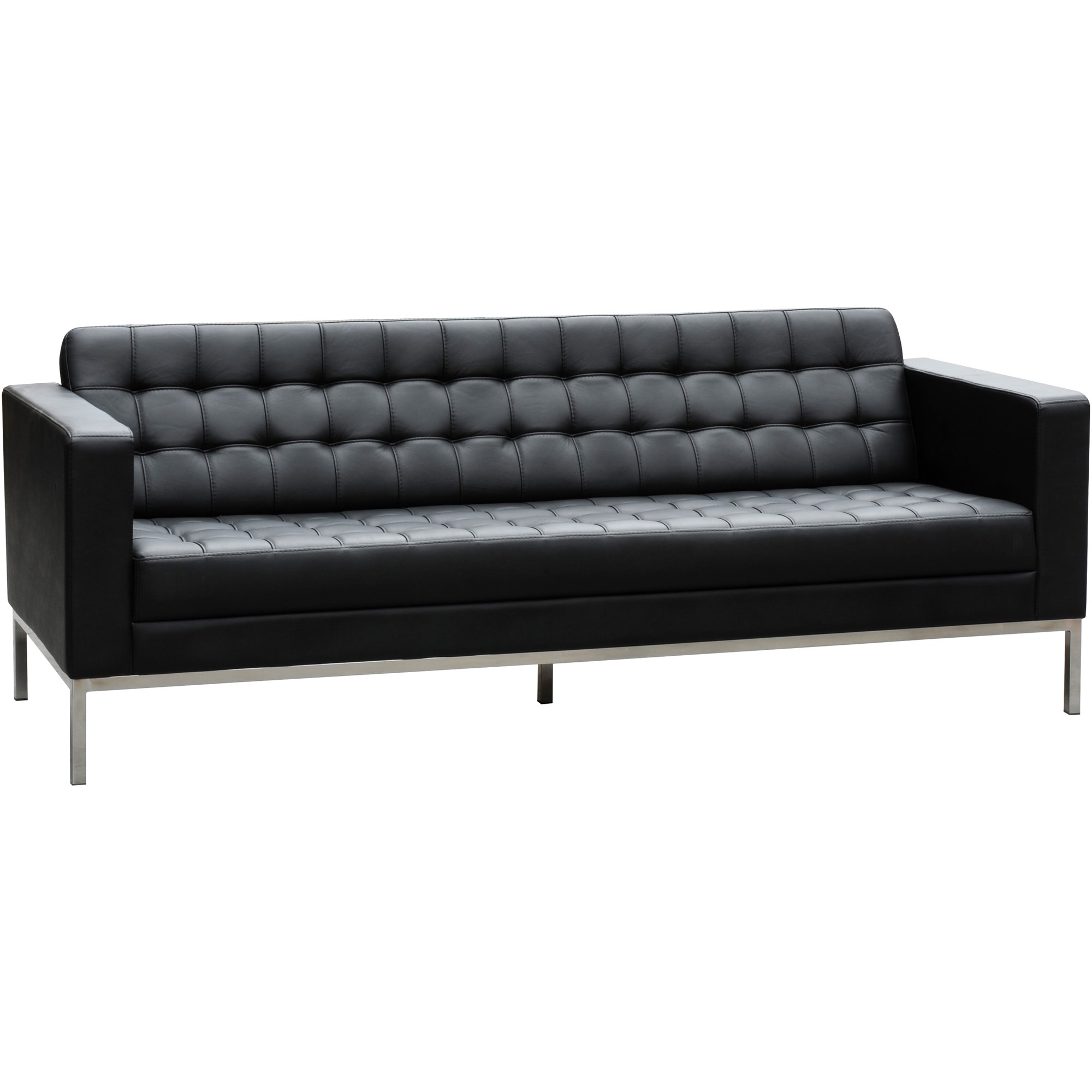 • Classic luxury, square- tufted leather lounge. Chrome feet.