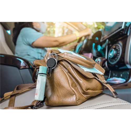 Strong magnet can hold up to 300g (equivalent to approx. 250ml). 60cm reel length. Easily attach to school bags, belt clips, backpacks and handbags. Quality German design. Ideal for personal use on public transport, by cleaners, teachers, nurses, doctors, aged care workers, warehousing and retail stores.
