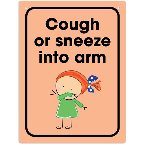 Durus School Sign Wall Mount Cough Or Sneeze Into Arm 225W x 300mmH Polypropylene Orange