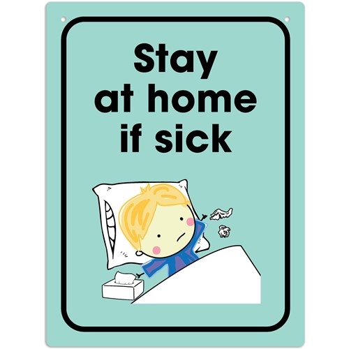 Durus School Sign Wall Mount Stay At Home If Sick 225W x 300mmH Polypropylene Green