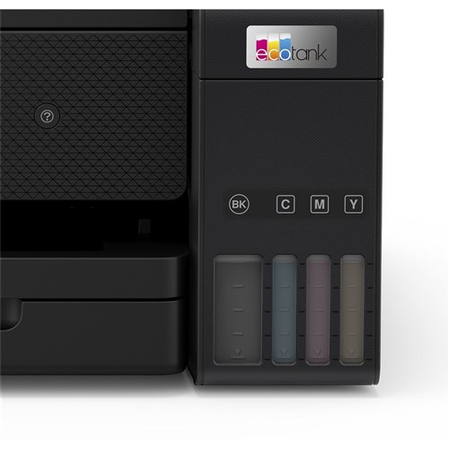 Cartridge-Free Printing - integrated high capacity ink tank system. Includes enough Ink to Print up to 14,000 pages black / 5,200 colour - equivalent to about 161 individual cartridges. Load Paper Less Often - high-capacity 250 sheet paper tray. Easy Touch-and-Swipe Setup and Navigation - large 2.4'' colour touchscreen. 30-sheet Auto Document Feeder; auto 2-sided printing; borderless printing up to A4; fax. Ultimate Wireless and Networking - easily print from iPad, iPhone, Android tablets and smartphones; includes Wi-Fi Direct 4 plus Ethernet. Exclusive Auto-Stop Ink Bottles - uniquely keyed for easy filling of each colour. Maximum Print Quality: 4800 x 1200dpi. Max Speed: 15.5ppm Black and 8.5ppm colour print. 1 Year Manufacturer's Warranty.