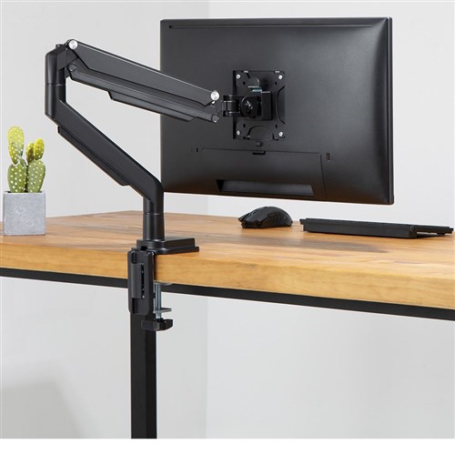 Clamp and grommet mounts to most any style desktop. Wide range of adjustments frees-up workspace. Rear tool holder easy access for any future adjustment. Effortless gas spring design adjusts easily to the most comfortable viewing position. Detachable VESA Plate for a quick and easy installation. VESA compatible 75mm x 75mm and 100mm x 100mm. Built-in Cable Management for an organised and neat workspace. Fits screen sizes 17inch to 32 inch. Weight capacity 1kg - 9kg. 255-315mmW, 175-505mmH, Tilt range +90 degress to -90 degrees, Swivel range +90 degrees to -90 degrees, Screen Rotation +90 degress to -90 degrees.