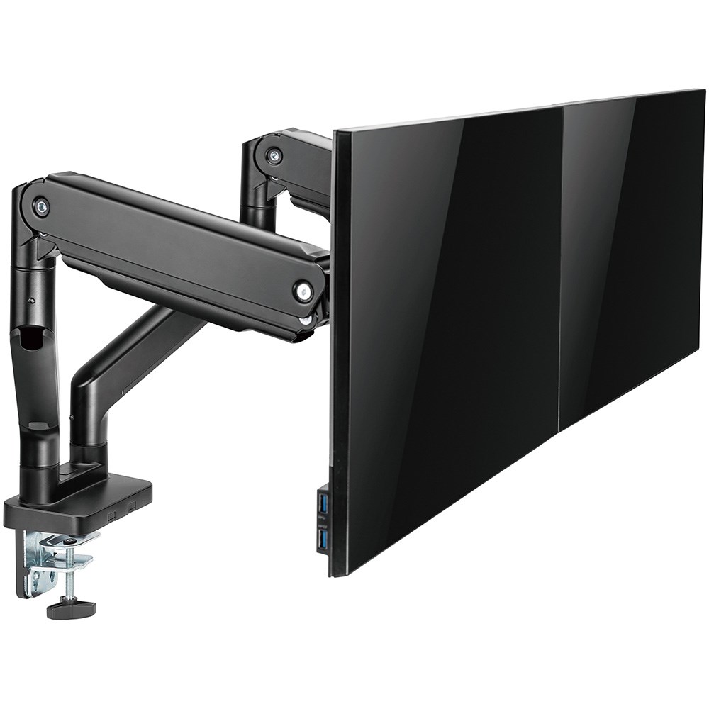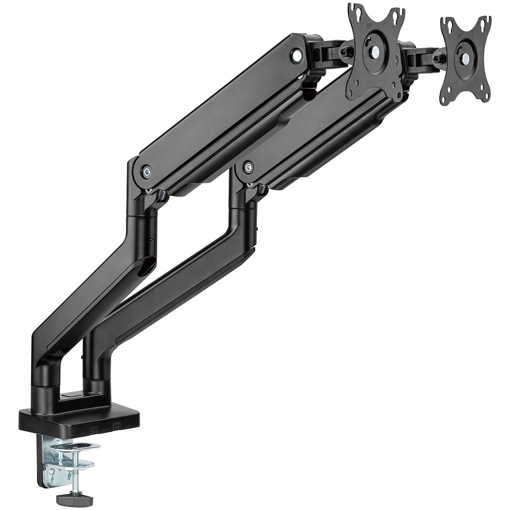 Premium heavy duty monitor arm confidently holds monitors up to 16kg per arm. Detachable VESA plate for quick attachment and detachment. VESA compatible 75 x 75mm and 100 x 100mm. Fully articulating arm with a tilt and swivel range up to 180 degrees. Built-In 180 degrees Rotation Stopper for confining the rotation to 180 degrees by tightening the lower screw, which prevents interference with walls or desk partitions. Fits screen sizes 17 inch to 45 inch. Weight capacity 2kg to 16kg per arm. Comes with grommet and clamp attachment. 210-355mmW, 245-540mmH, Tilt range +90 degress to -45 degress, Swivel range +90 degress to -90 degrees, Screen Rotation +180 degrees to -180 degrees.