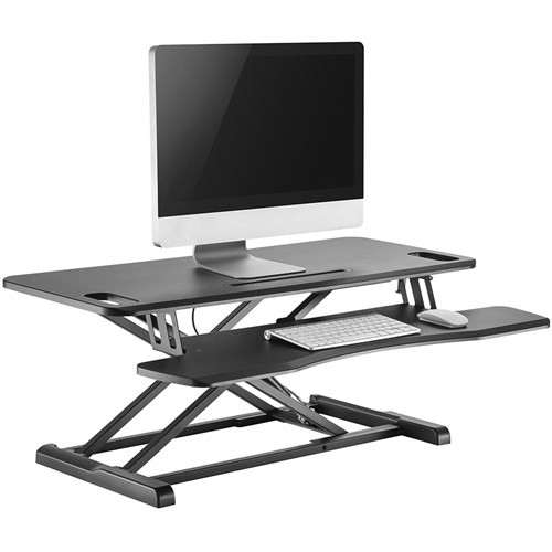 Turn any desk into an active, healthy, height adjustable sit-stand desk. Convienient keyboard tray. Effortless gas spring structure. Easy squeeze handle adjusts the height effortlessly. Extra storage slot for phone, tablet and other accessories. Worksurface size 950W x 400mmD. Height range 110 - 505mm. Weight capacity 15kg. Delivery, installation and assembly charges may apply to furniture. Please enquire to confirm.
