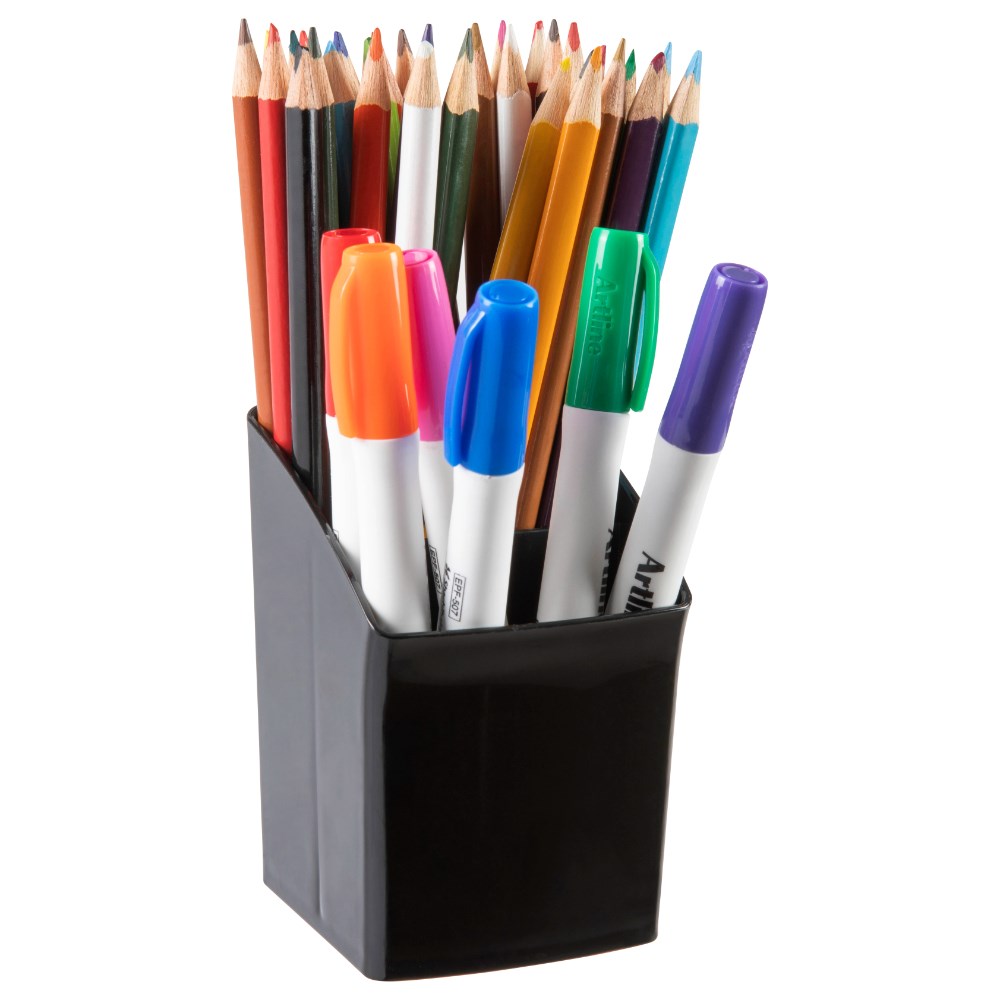 Multifunctional with new contemporary design and two compartments. Stores stationery and displays mobile phones and business cards. Slanted design allows for visibility of accessories in front compartment. Dimensions: 68W x 70L x 105mmH. Available in a range of colours.